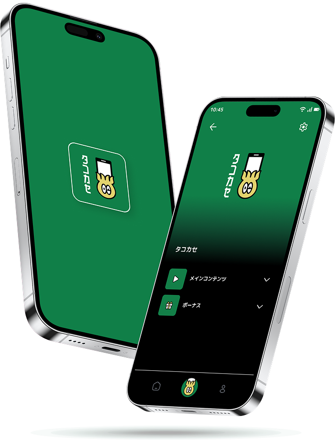 スマートフォン(Android, iPhone )にタコカセアプリをインストール(無料配布)。